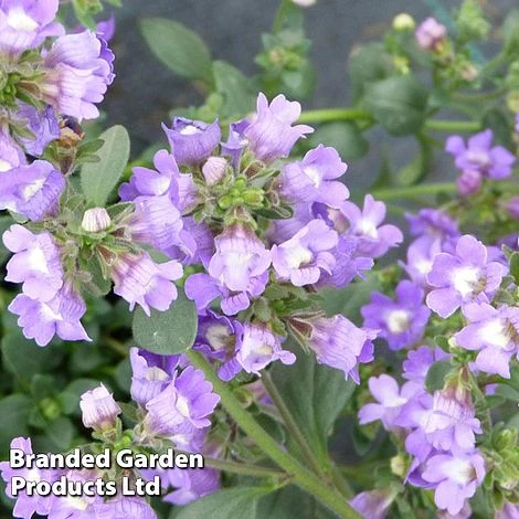 A native of mountainous regions in the Iberian Peninsula and Balearic Islands, this semi-evergreen alpine perennial is an ideal choice for a rockery, scree or slope, as well as making a drought-tolerant container plant. Chaenorhinum origanifolium ‘Blue Dream’ has a spreading habit, forming soft, cascading cushions of tiny, round, semi-evergreen leaves. Throughout late spring and early summer it bears masses of small, purple, snapdragon flowers with yellow throats. Height: 15cm (6”). Spread: 50cm (20”).