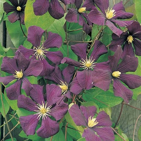 This vigorous clematis is at its best when scrambling among mature trees and shrubs. From June to August, Clematis ‘Étoile Violette’ bears a profusion of small, deep violet purple flowers, each with a contrasting boss of creamy yellow stamens. The long stems and small flowers allow it to travel great distances without overpowering other plants. Better still, maintenance couldn’t be easier – simply cut it back to ground level each year. This classis Clematis also holds an RHS AGM. Height: 5m (15′). Spread: 1.5m (5′). Pruning group: 3.