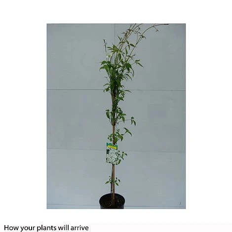 A vigorous climber that will quickly smother any vertical surface with dense deep grey-green foliage, which in turn will become a backdrop for a spectacular display of crisp white flowers in early Summer. Clematis montana ‘Grandiflora’ is a valuable addition to most gardens due to its ability to hide unsightly fences or walls completely, giving you a much preferred “living” wall, both for humans and wildlife alike! Height: 12m (39′). Spread: 4m (13′). Pruning group: 1.