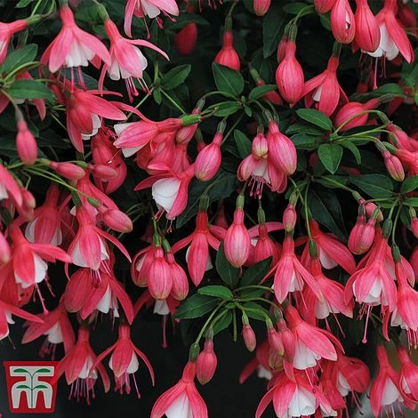 Fuchsia ‘Lady Thumb’ is a neat, compact hardy fuchsia for patio pots, rockeries or mixed perennial borders. The classic flowers are pink and white, and produced in profusion from June and on into the summer. Fuchsias will grow very well in sun or part shade, and are excellent for difficult corners of the patio. Fuchsias require very little maintenance, just some casual deadheading every few days will encourage more blooms. Height: 30cm (12″). Spread: 45cm (18″).