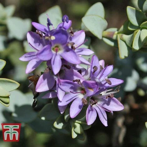 True to its name, Hebe pimeliodes ‘Quicksilver’ is cloaked with tiny silvery-green leaves that stay evergreen. From mid-summer, it produces a pretty display of mauve purple flowers, which contrast nicely with its foliage. This low, spreading shrub has a loose, open habit but remains neat and compact. It associates beautifully with other silver-leafed plants and makes a useful addition to mixed borders. Height: 50cm (20″). Spread: 75cm (29″).