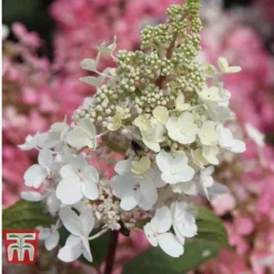 Hydrangea macrophylla ‘Rotschwanz’ has almost two-tone flowers over the summer months, deep red, cross shaped flowers encircle the pale coloured pink of the lacecap blooms giving it its striking appearance. In more acid soils the flower colour will become a more mauve hue, but equally as attractive! Autumn will turn the leaves shades of red before they fall giving this hard deciduous shrub a true blaze of colour in your garden. Height: 150cm (59″). Spread: 150cm (59″).